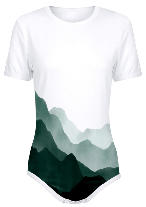 Featuring a stunning green watercolor pattern that evokes serene mountain landscapes, this onesie adds a calming and stylish touch to your everyday wear. It’s perfect for nature lovers and those who appreciate artistic elegance.